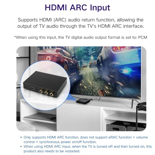 HDMIがないとテレビと接続できないという誤解があるが、テレビ側の光デジタル出力やアナログ出力を使えば音声接続は成立する。ARCやeARCが使えない場合、音量連動や電源連動は前提にできないため、操作はアンプ側で行うことになる。